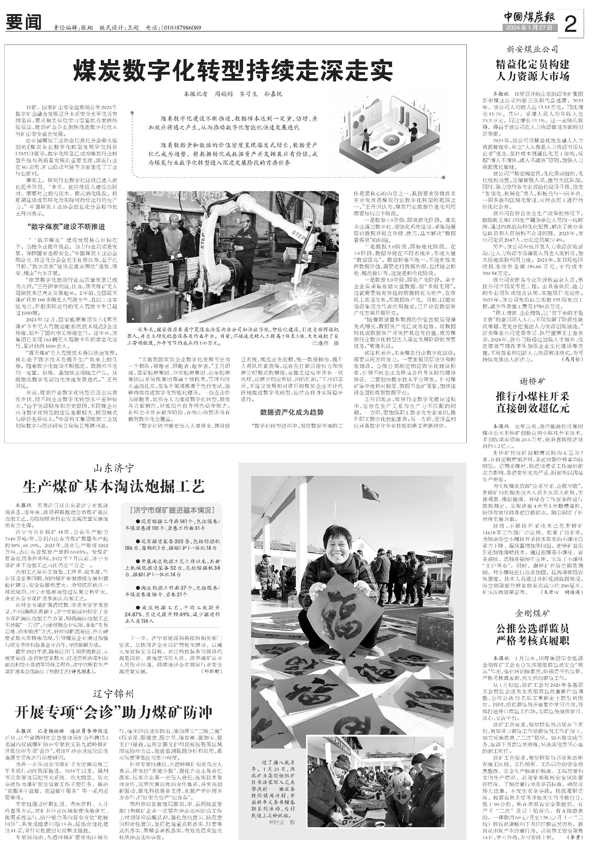 | 看煤炭数字化转型持续走深走实!字号:[ 大 中 小 ]发布时间:2024-01-31 17:01:08来源:中国煤炭报发布人:刘一鸣